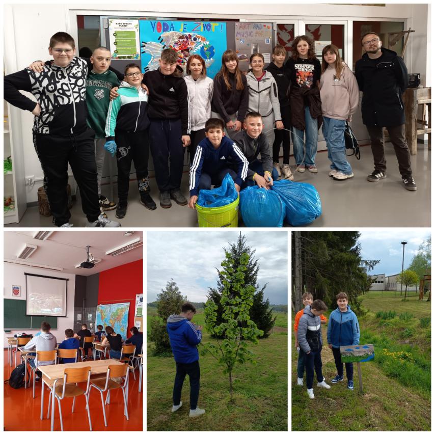 U srijedu 22. travnja, u punoj spremi za čišćenje, učenici naše škole započeli su tradicionalnu čistku školskog dvorišta i okolice, obilježavajući tako Dan planeta Zemlje. Prvo su skupili otpatke po asfaltiranom nogometnom i košarkaškom igralištu, a zatim su očistili teren i tribine igrališta odbojke na pijesku. Potom su napravili krug oko škole, jer ne biste vjerovali što se sve može pronaći ispod prozora učionice pokraj kojeg su đačke klupe. Skupivši svo nađeno smeće u školskom dvorištu, učenici su se potrudili i očistili i poligon pokraj škole sve do autobusne stanice. Akcijom čišćenja koordinirao je učitelj Josip Kraš. Nakon čistke učenici su na satu kod učitelja Željka Simića izradili prezentaciju o Danu planeta Zemlje i našoj čistki školskog dvorišta.