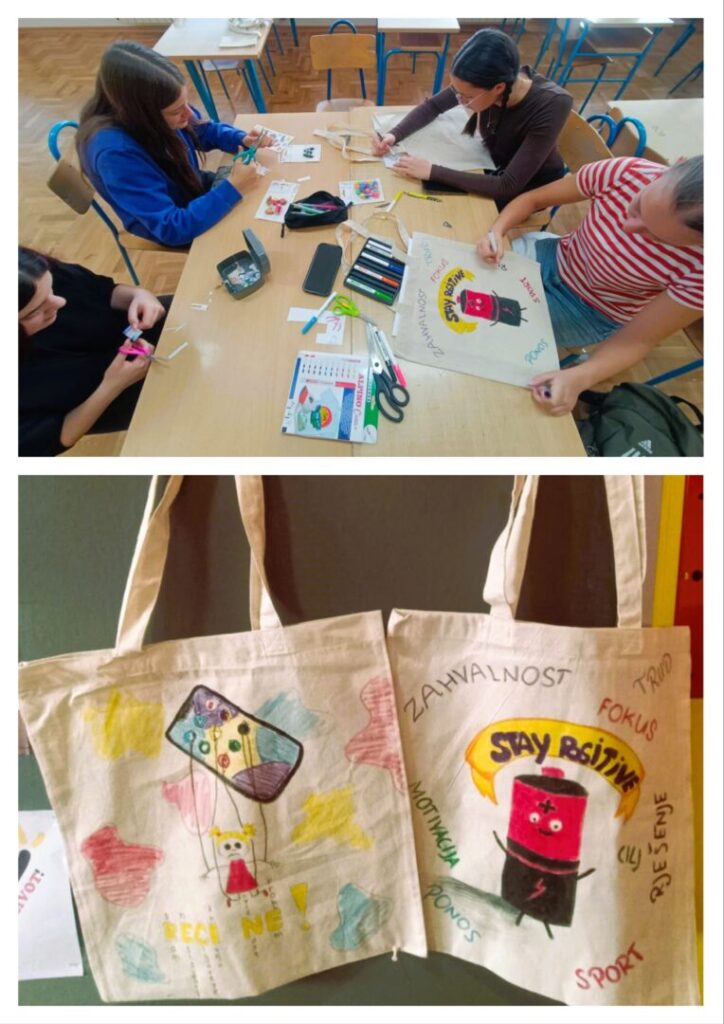 Učenice 8. a razreda, polaznice dodatne nastave biologije, ukrašavale su platnene vrećice pod sloganom „Biraj što nosiš“ kako bi učenike naše škole osvijestile o problemima tradicionalnih ovisnosti (alkohol, droga, cigarete) i modernih ponašajnih ovisnosti. Učenice su izradile kratki video uradak tehnikom stop animacije o najčešćim primjerima ovisnosti u razdoblju puberteta čija je svrha podizati svijest o prevenciji ovisnosti. Ovisnosti u pubertetu su česte i mogu se manifestirati kroz zlouporabu supstanci ili ponašanja, često kao bijeg od problema i zbog prilagodbe skupini vršnjaka.