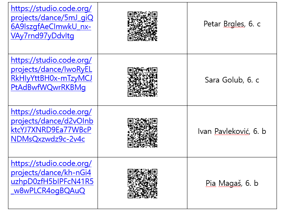 Posebno im je bilo zanimljivo što su mogli birati glazbenu podlogu među velikim brojem aktualnih i modernih pjesama, što je dodatno povećalo njihovu motivaciju i osjećaj uključenosti. Kodiranje je tako postalo osobnije i zabavnije – svaki ples dobio je svoj jedinstveni ritam.