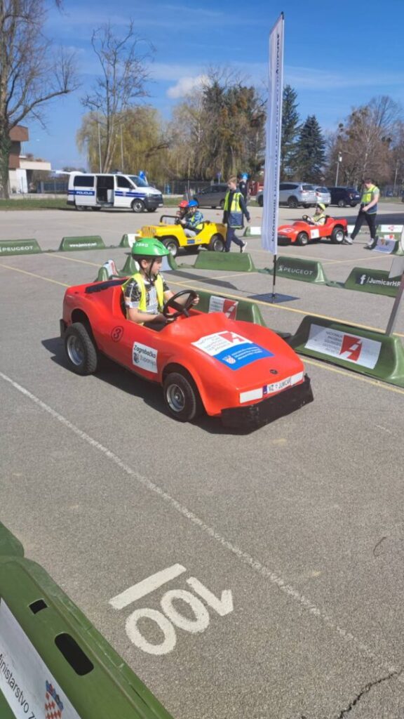Nakon odslušanog teorijskog dijela, tijekom kojeg su učenici kroz zanimljivo i interaktivno predavanje učili o pravilima sigurnog ponašanja u cestovnom prometu, uslijedio je onaj najuzbudljiviji dio – izlazak na školsko igralište gdje ih je dočekao mobilni prometni poligon. Na šarenom poligonu mali su sudionici imali priliku okušati se u ulozi vozača te u praksi primijeniti sve što su naučili. Kroz upravljanje vozilima na električni pogon i snalaženje u prometnim situacijama, dodatno su učili kako postati pažljiviji i sigurniji pješaci.