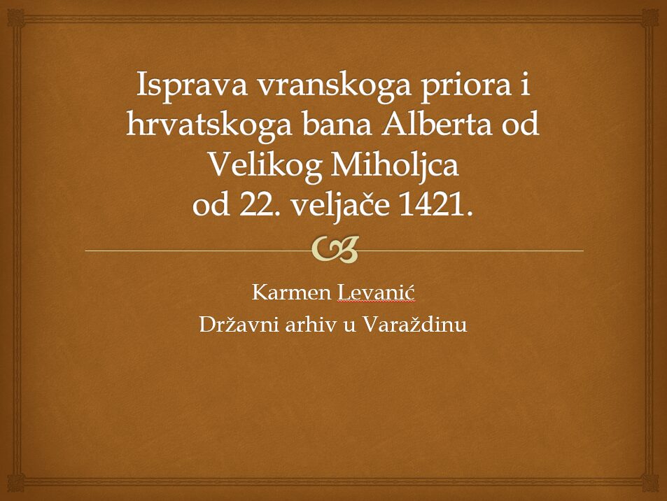Tema predavanja bila je isprava vranskoga priora i hrvatskoga bana Alberta od Velikog Miholjca od 22. veljače 1421. Ovo predavanje jedna je od planiranih aktivnosti školskog projekta Osobine velikog čovjeka – Ivan Kukuljević Sakcinski.