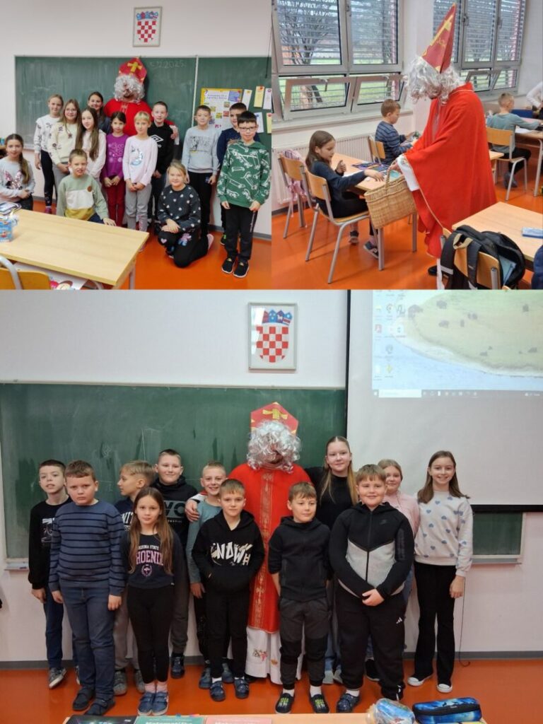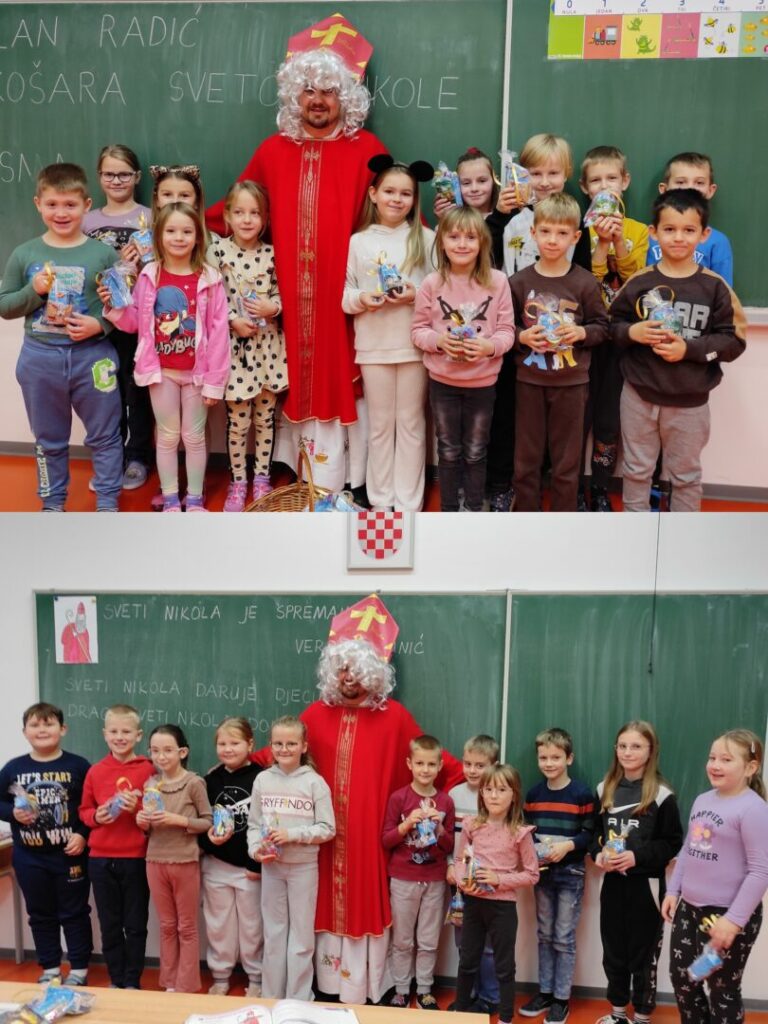 U petak 5.12.2025. sveti Nikola je iznenadio i posjetio učenike od 1. do 4. razreda. Porazgovarao je i šalio se s njima te je otjerao čak dva krampusa koji su se zatekli u blizini. Za učenike od 5. do 8. razreda pripremio je različite zagonetke koje su trebali riješiti. Učenici viših razreda su uz puno truda uspješno riješili sve zagonetke, a za nagradu su dobili slatke paketiće kao i učenici nižih razreda koje im je donio sveti Nikola.