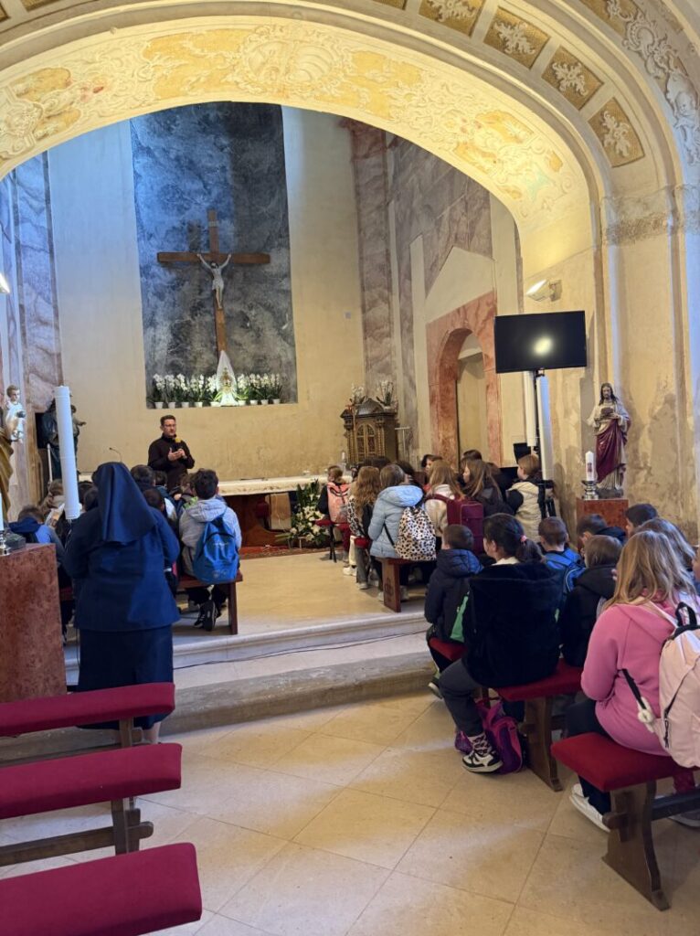 Terensku nastavu započeli smo u Ludbregu, gradu poznatom kao središte svijeta. Naši prvopričesnici su tamo vidjeli relikviju Krvi Kristove i poslušali priču o njoj, te na kraju posjetili Svetište. Put nas je dalje vodio u Varaždinske Toplice gdje smo s rimskom božicom Minervom zaronili duboko u prošlost. Na arheološkom lokalitetu Aquae Iasae ispričala nam je sve o Rimljanima i njihovoj brizi za zdravlje i higijenu te kako su uživali na kupalištu. Nakon ručka posjetili smo Sokolarski centar u Leskovcu Topličkom. Djeca su tamo upoznala sokola, jastreba, sovu i gavrana.