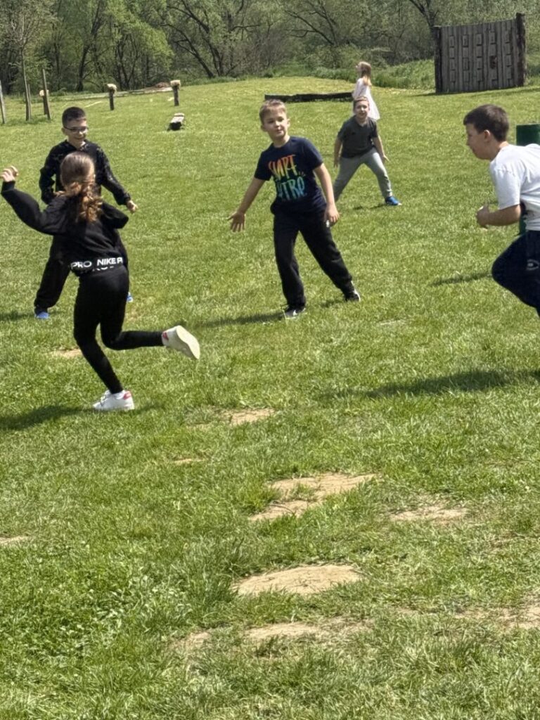 Dan smo priveli kraju uz glasan smijeh i navijanje tijekom dječje olimpijade. Učenici su se natjecali u starinskim i sportskim igrama, razvijajući tako timski duh. Zadovoljni, ispunjeni i iscrpljeni krenuli smo put kući.
